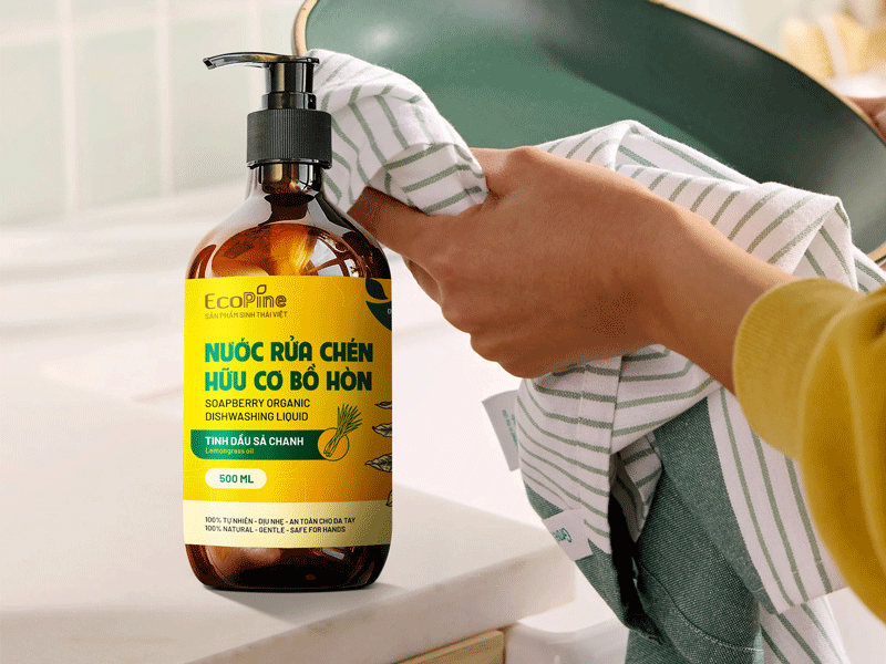 Nước rửa chén hữu cơ chiết xuất từ bồ hòn và tinh dầu thiên nhiên. Không hóa chất, không hại da tay.